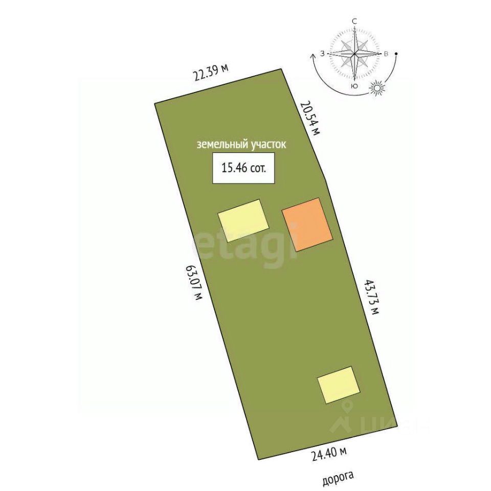 Участок подходит для строительства капитального жилого дома с круглогодичным проживанием, также существует потенциальная возможность для размещения таунхаусов при комплексной застройке.