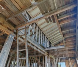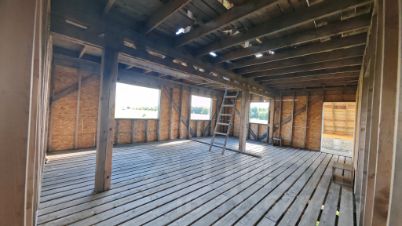 1. Брус 6*6м, 2 оконных проёма, 1 этаж + мансарда. Ленточный фундамент. Оформлен документально как жилой дом