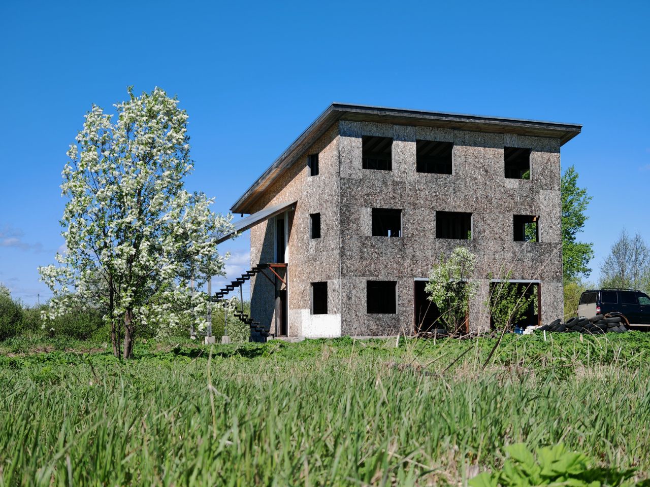 2. Каркасное строение 9*12м (обшит ОСП, без утеплителя) в 3 этажа: