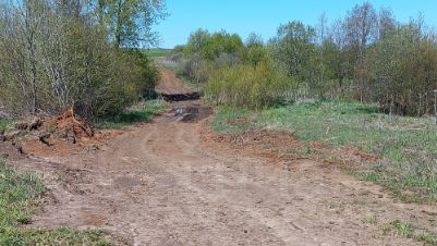 До деревни асфальт, от асфальта до участка около 300м грунтовой дороги.