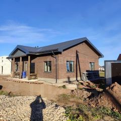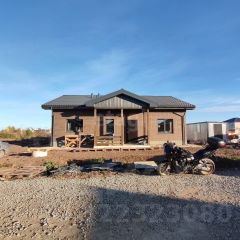 Дом построен по современным технологиям: монолитный фундамент, энергоэффективные стены из газоблока с утеплением и модной отделкой кирпичом "Бавария". Элегантную внешность подчёркивают крыша и окна цвета графит.