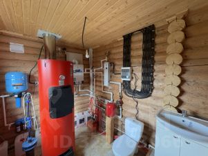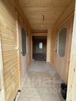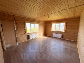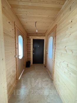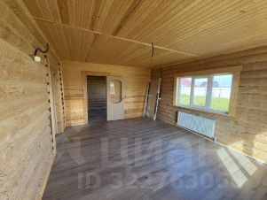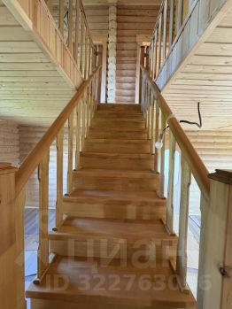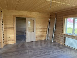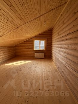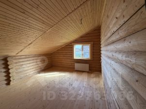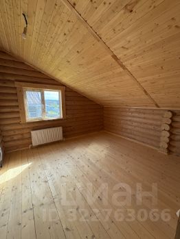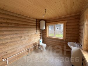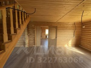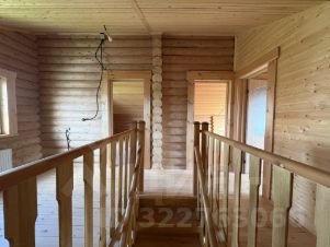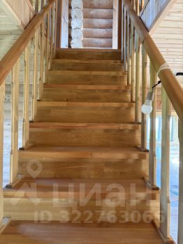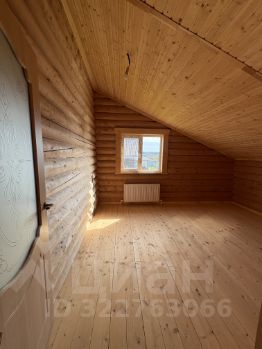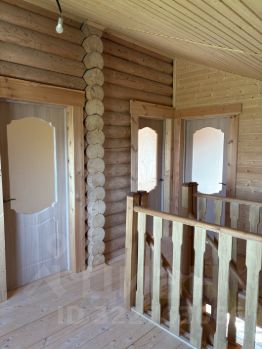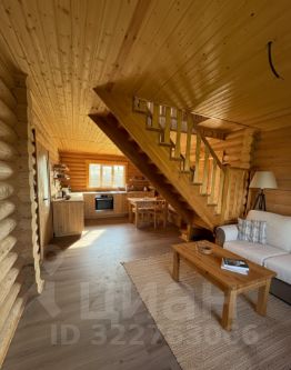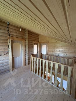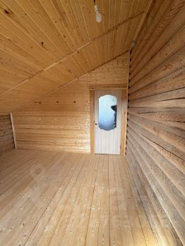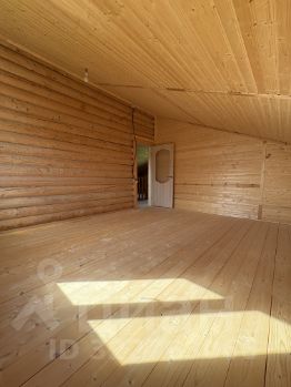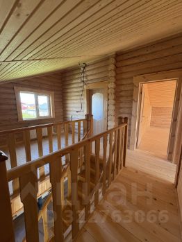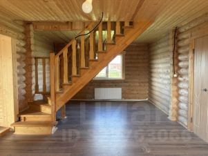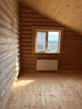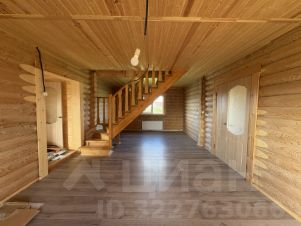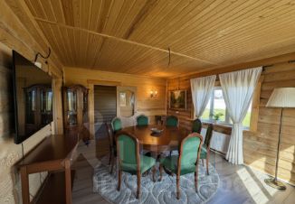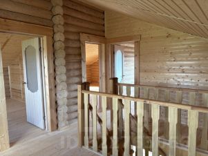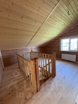 Внутри — натуральное дерево: стены из бревна, потолки и перегородки из светлой вагонки. Установлена деревянная лестница на второй этаж. Дом в состоянии под ключ, полностью готов к проживанию.