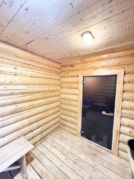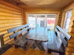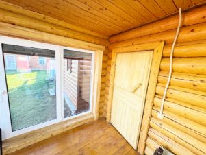 Просторная деревянная баня для отдыха с уютной комнатой отдыха и с зоной для барбекю.