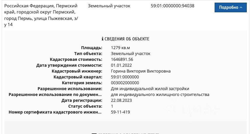 Кадастровый номер: 59:01:0000000:94038