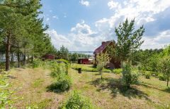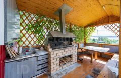 Участок площадью 23 сотки полностью благоустроен: огорожен кованым забором, оборудован зоной отдыха с мангалом и баней площадью 24 кв.м.