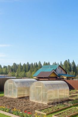 Есть две теплицы, ёмкость для полива, летний душ.