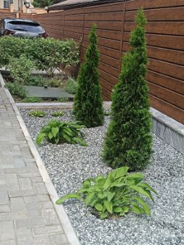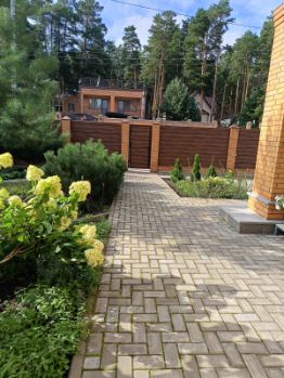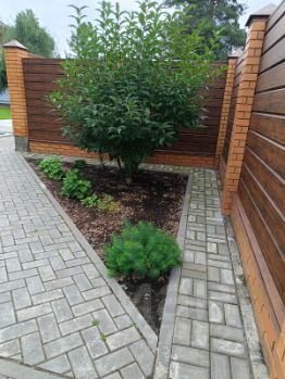 - высажены декоративные и фруктовые деревья, сосны;