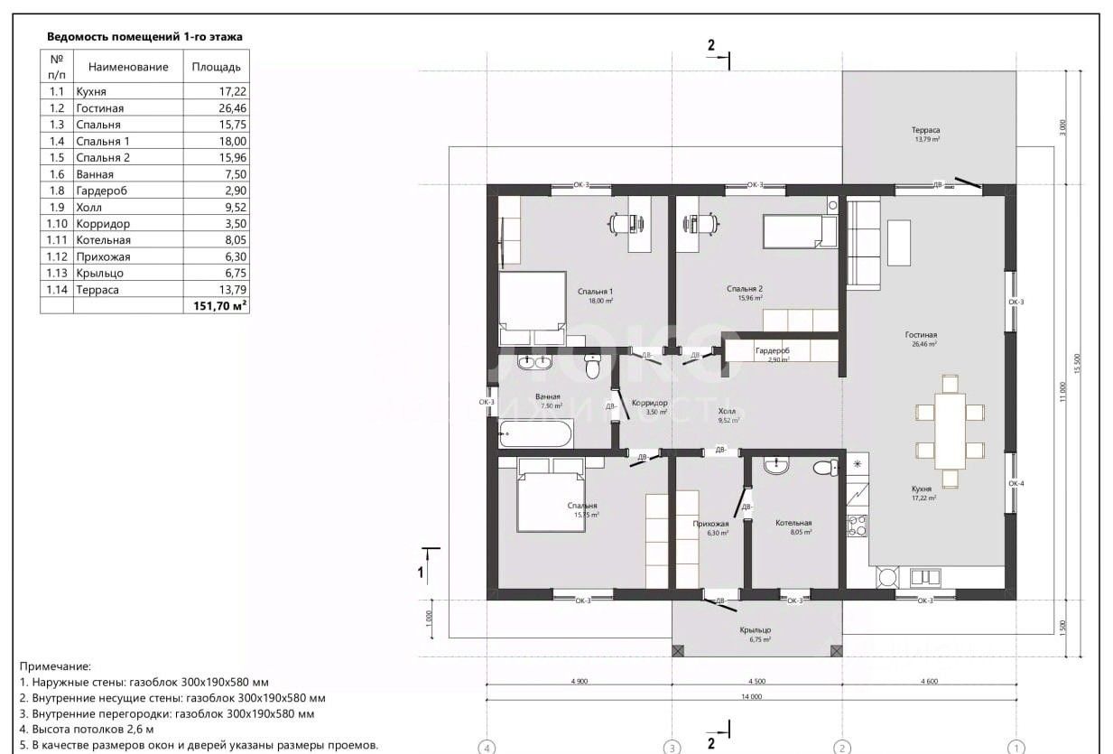 - размер дома 11*14 м