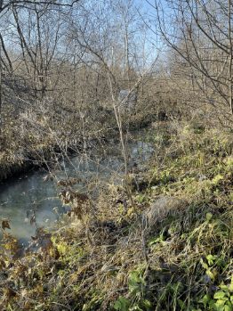 Участок ровный, по краю проходит небольшая речка, приятное место для отдыха.