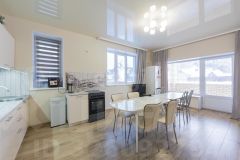 Планировка дома продумана до мелочей и состоит из просторной кухни — гостиной и трех изолированных комнат. Комнаты просторные с высокими потолками ;что дает ощущение света и воздуха.