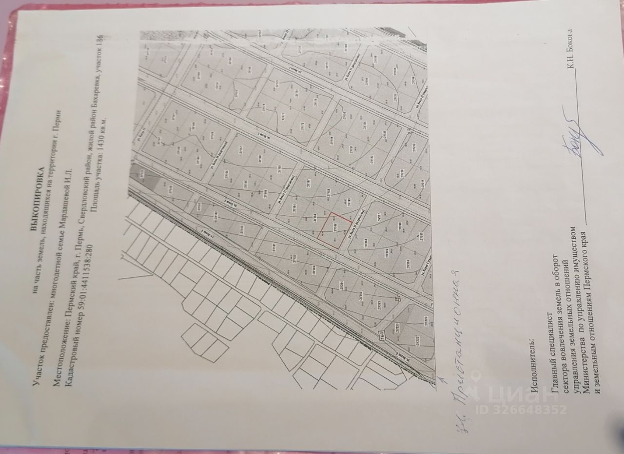 Продается ровный земельный участок под строительство дома. Земельный участок получен по программе многодетных семей. В собственности есть дети. Будет опека. Кадастровый номер 59:01:4411538:280.