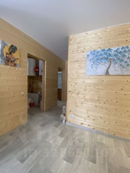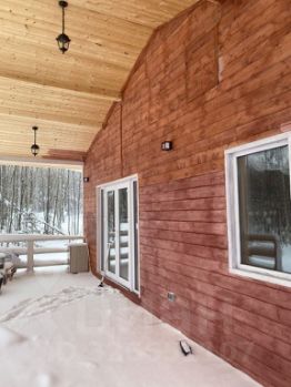 Дом каркасный, стоит на винтовых сваях, скрепленных бетонной стяжкой. Из коммуникаций есть электричество, отопление (теплые полы), водопровод - скважина на весь жилой комплекс, канализация- кольца с переливом.