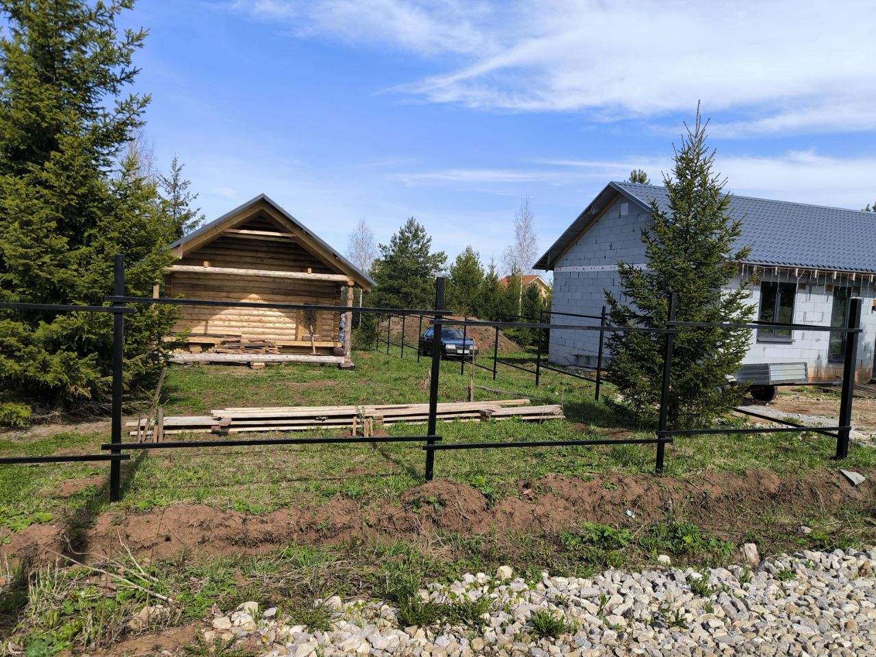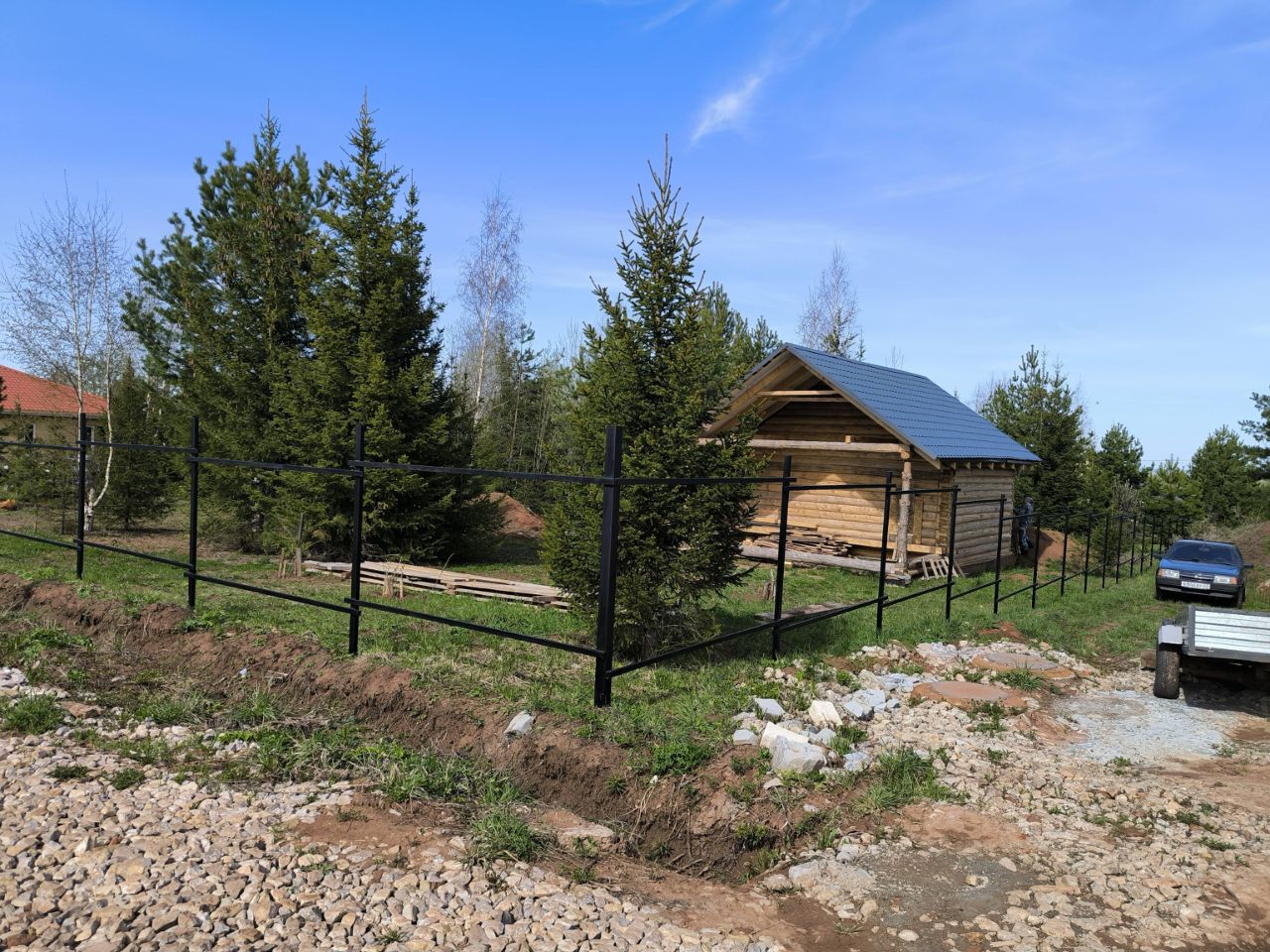 Р.Кама в километре. На участке имеется: действующая скважина, СРУБ шести стенка на фундаменте ленточно-свайный размером 6*6 кв. м. с заглублением 230 см. , два колодца для канализации. Имеется каркас забора. На смежных участках построены дома. Магазины в шаговой доступности. Кадастровый номер : 59:32:3250001:23463.