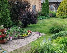 - Сухой, ровный с ландшафтным дизайном: большое количество многолетних цветов,