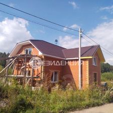 Дом из пеноблоков, облицованный кирпичом, участок ровный, правильной формы.