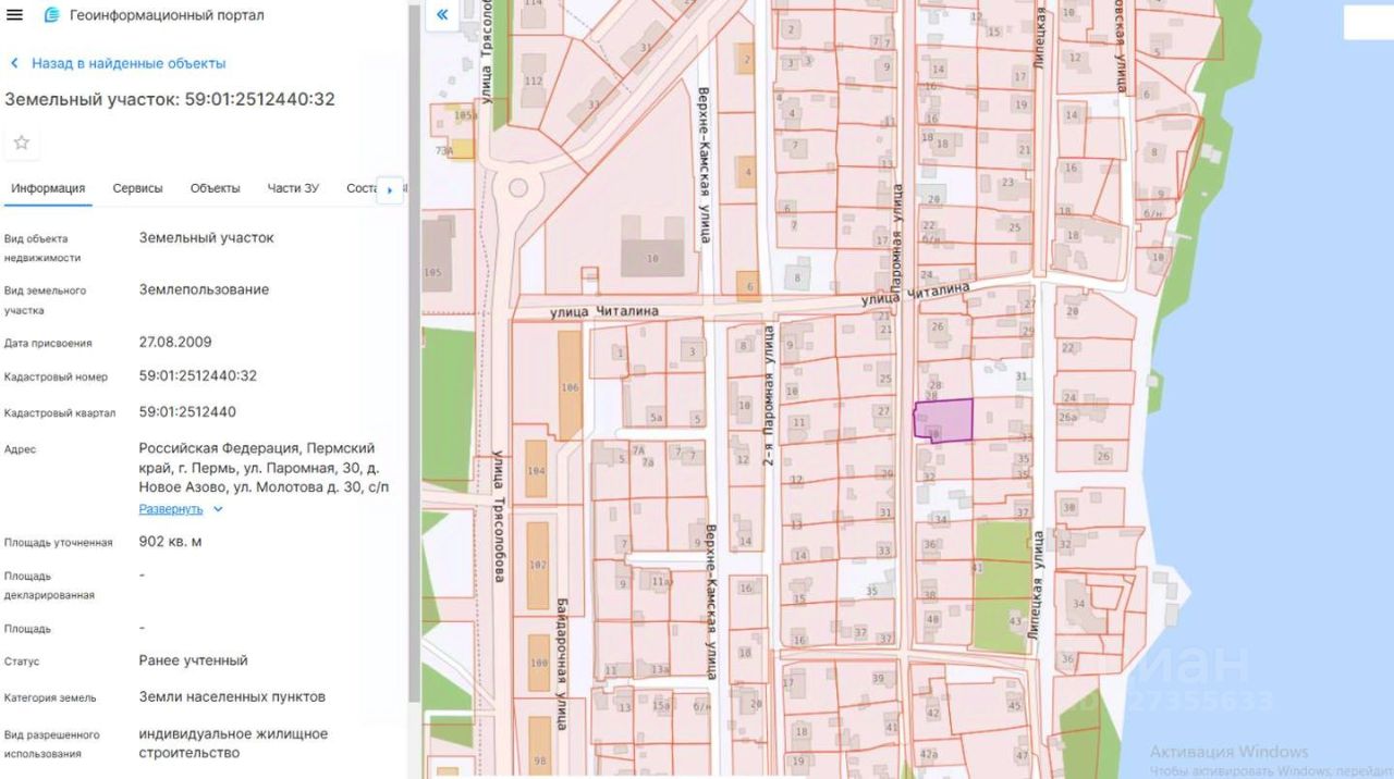 Кадастровый номер участка: 59:01:2512440:32