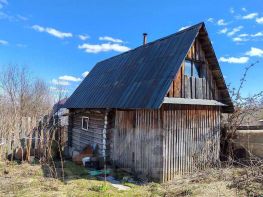 На участке стоит старый бревенчатый дом.