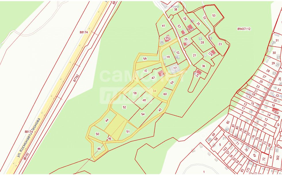 Приватность: Участки (50, 44, 45, 46) образуют большой тупиковый массив. Никто не будет ездить мимо ваших окон — здесь только "свои".