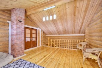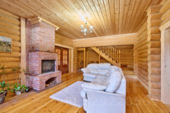 - просторная гостиная с камином;