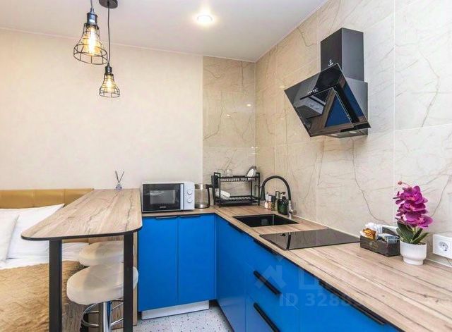 - стильная кухня с холодильником, посудомоечной машиной индукционной плитой и отличной вытяжкой, выстроенной микроволновкой, чайником, фильтром для воды и всеми необходимыми приборами и посудой для приготовления и употребления пищи,