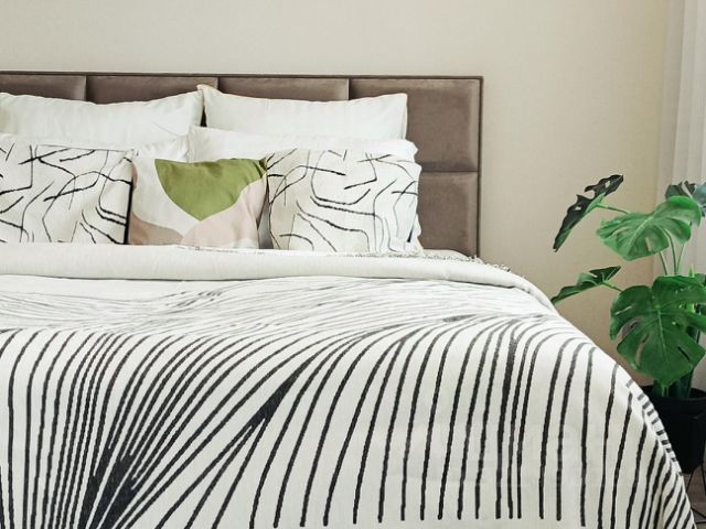 - двуспальная кровать с уже заправленным чистым постельным бельем.
