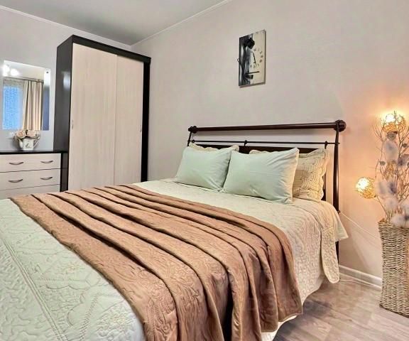 — Двуспальная кровать с ортопедическим матрасом и нежным постельным бельём из сатина