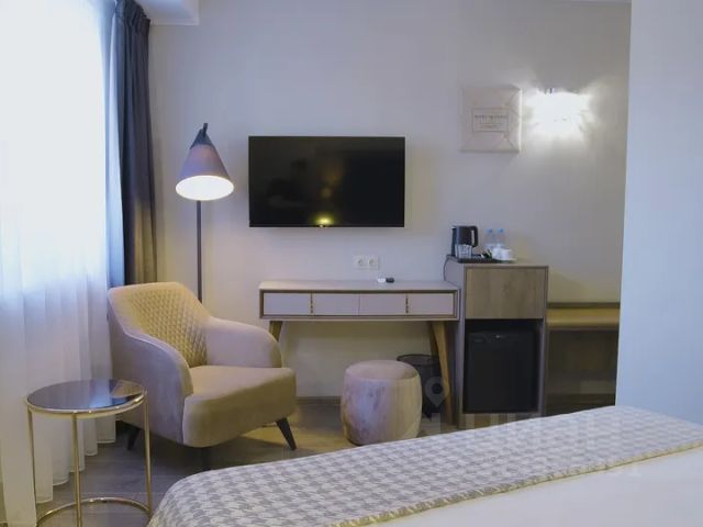 К вашим услугам представлены шесть элегантных номеров категории СТАНДАРТ-ПРЕМИУМ. Номера площадью от 24 до 28 квадратных метров идеально подходят как для индивидуального размещения, так и для проживания вдвоем. Возможно размещение третьего гостя. Для максимального комфорта гостей каждый номер оборудован всем необходимым: бесплатный Wi-Fi, кондиционер, цифровое ТВ (Smart TV), надежный сейф, набор для приготовления чая и кофе, бутилированная вода, косметические и другие необходимые принадлежности. В номере: Функциональное зонирование номера на прихожую, спальню и рабочее место Большая двуспальная кровать Прикроватные тумбочки Письменный стол и стул Платяной шкаф Сейф Чайная станция, кофемашина Nespresso, наборы чая и кофе Ванная комната с окном, теплым полом, тропическим душем, биде Халат и тапочки, комплект полотенец Фен, набор туалетных принадлежностей Телефон Телевизор Кондиционер Мини-бар Яндекс Станция Wi-Fi Шторы blackout Наши администраторы готовы помочь вам в организации комфортного проживания.