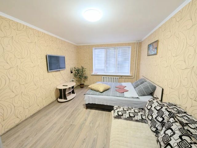 Современная однокомнатная квартира в новом доме ЖК "Фаворит" . Дом располагается в развитой инфраструктуре, одновременно в 5 минутах езды до центра города. Парковка и территория двора с детской и спортивной площадкой. На парковке, во дворе и в подъездах ведётся видеонаблюдение. Мы предлагаем всё, что необходимо для вашего комфортного проживания: Wi-fi Большой телевизор ЖК более 86 каналов. Холодильник, стиральная машина, микроволновая печь, утюг с гладильной доской, электрический чайник. Комфортная двуспальная кровать, раскладной диван, 2 односпальные кровати. Полный комплект посуды и приборов. Чай, сахар. Всегда чистое, глаженное бельё и полотенца. За счёт дверей- купе, зал можно зонировать в 2 спальни, на фото показано, спальня обустроена двумя односпальными кроватями. В квартире категорически запрещено курить (за исключением курения на балконе). Квартира не сдаётся для проведения шумных вечеринок. При заселении — паспорт обязателен. Предоставляем отчётные документы для командированных, для работы по перечислению с организациями есть расчётный счёт. Ранний заезд и поздний выезд, тоже возможен, обсуждается заранее! Мы заинтересованы в Вашем комфортном пребывании!