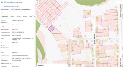 Земельный участок с кадастровым номером 59:02:0901015:13 по адресу: Пермский край, Александровский м.о., рп. ул. Ленина 5, земельный участок площадью 1222 кв.м, вид разрешенного использования: для строительства индивидуального...