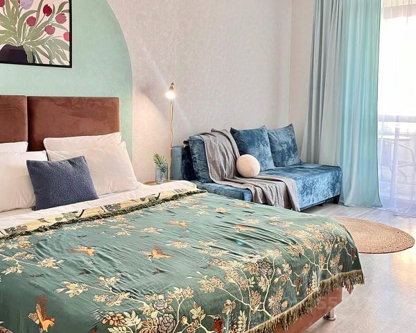 - двуспальная кровать и раскладной диван, шкаф, большой телевизор со Смарт-ТВ,
