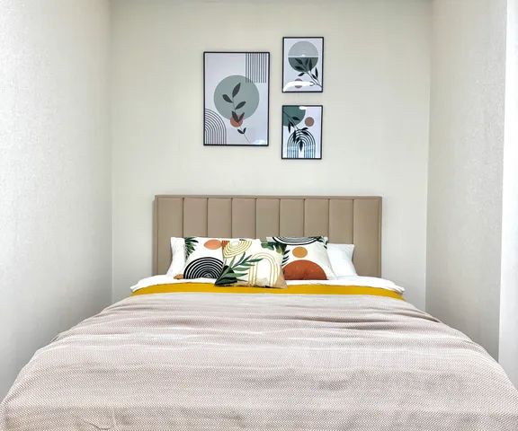 -Во всей квартире сделан абсолютно новый ремонт. Мебель в квартире практически вся новая, кровать и матрац новые. В квартире 4 спальных места-двухспальная кровать, двухместный диван. Комната разделена перегородкой в современном стиле, которая отделяет зону для сна. В вашем распоряжении 2 шкафа для одежды и вещей с вешалками. Квартира полностью оснащена необходимой бытовой техникой-телевизор с функцией смарт, стиральная машина, водонагревательный бак, микроволновая печь, электрочайник, утюг, гладильная доска, сушилка для белья.
